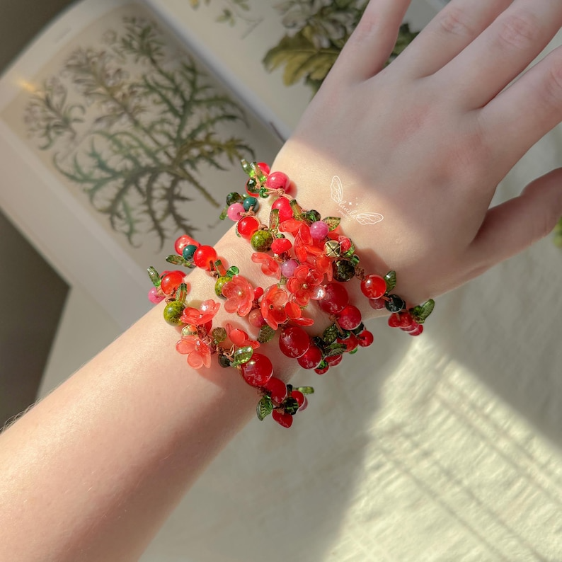 Crimson Chime Bracelet, Shrink Plastic and Brass, Gift For Her